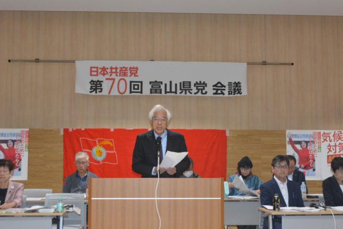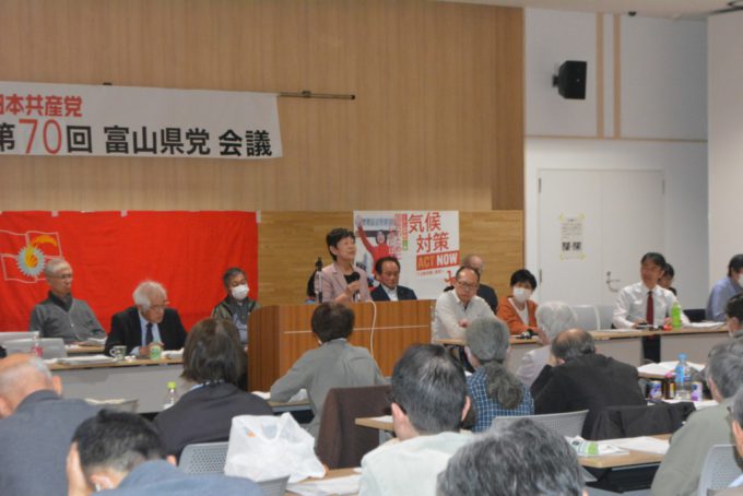 日本共産党富山県委員会は29日、来年1月の第30回党大会成功に向け、富山市内で第70回県党会議を開催しました。