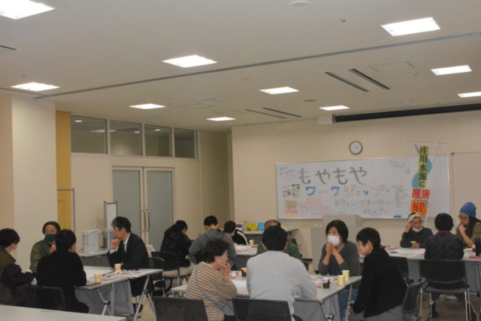 日本共産党呉西地区委員会は4日、高岡市内で青年・真ん中世代を対象に「モヤモヤワークショップVol・2」を開きました。坂本洋史党県書記長や党員が、参加した青年や真ん中世代のくらしの悩みや、アメリカ・イスラエルによるイラン侵攻に対するモヤモヤした思いに向き合いました。約20人が参加し、20代の女性2人が入党しました。